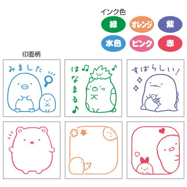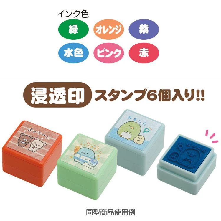 Sumikko gurashi角落生物|San-x Sumikko Gurashi Stamp 哇哇哇木薯便利店系列6色闪闪印章套组|约3.5 x 15.0 x 12.5cm