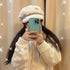 Disney SH|侦探贝儿千鸟格羊羔绒蝴蝶结贝雷帽|头围57cm